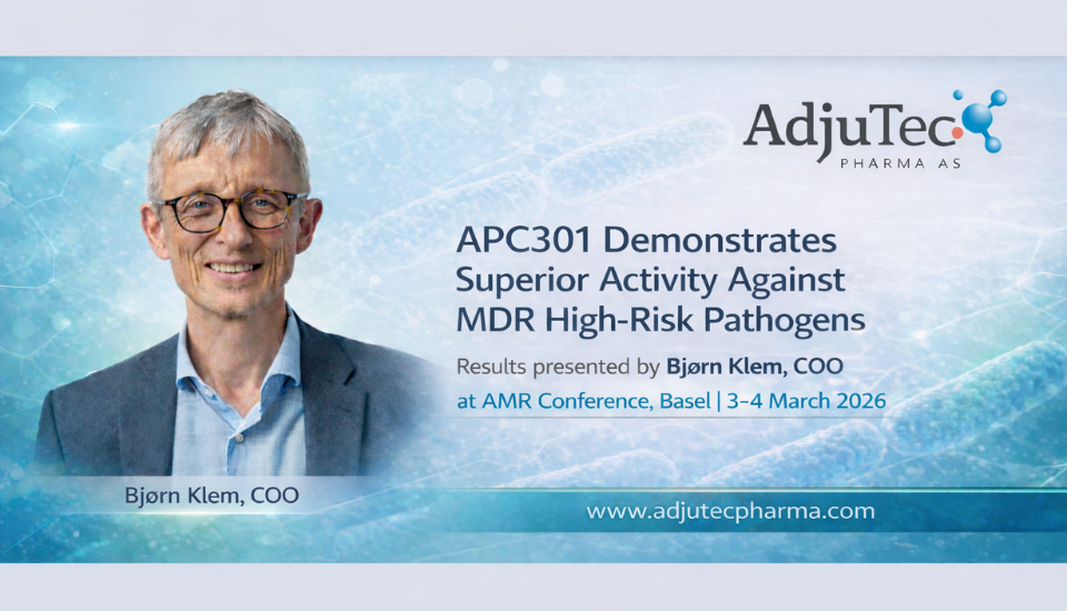 Oslo, Norway, 2 March 2026 – AdjuTec Pharma AS, a privately held company developing antibiotic resistance breakers, today announces positive preclinical results from studies in multidrug-resistant (MDR) pathogens with its lead product APC301. The results strongly support ongoing clinical development of APC301 including its unique enzyme inhibitor technology